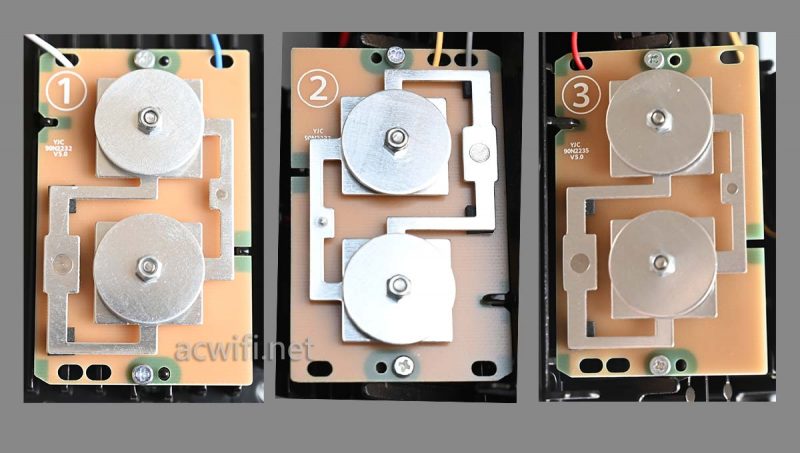 主要是采用了三片定向天线,跟其它PCB天线一起,一共有8根天线负责5G频段的2T2R,强化了三个120度方向覆盖,简而言之:利用算法择优选路与无缝切换。