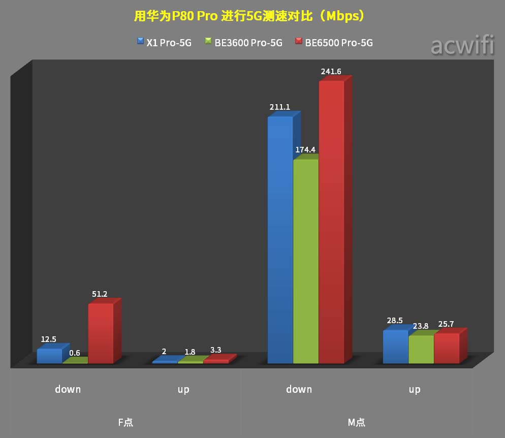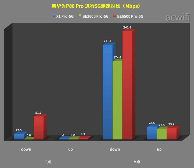 在F点位置里小米BE3600 Pro的5G也没有速度,由于小米BE6500 Pro4x4MIMO的优势,因此在两个位置里的5G速度都比华为X1 Pro 要快。