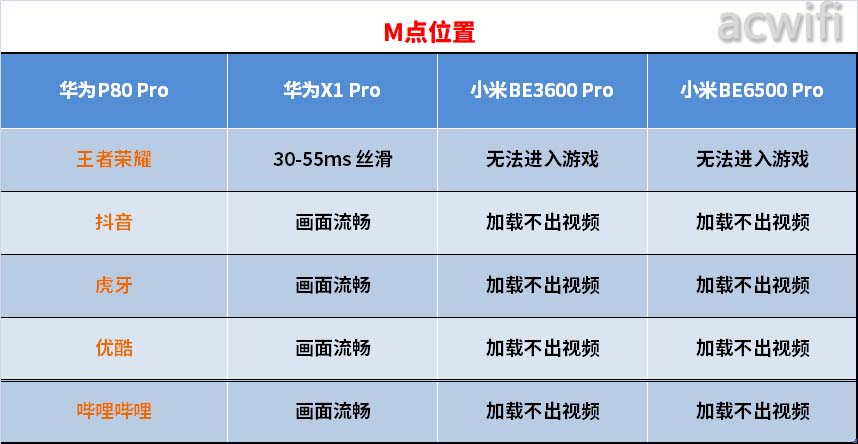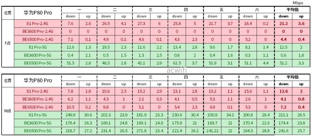在两个位置里,华为X1 Pro比小米 BE6500 Pro的2.4G速度要快,华为P80 Pro的2.4GHz性能也优于iPhone16。