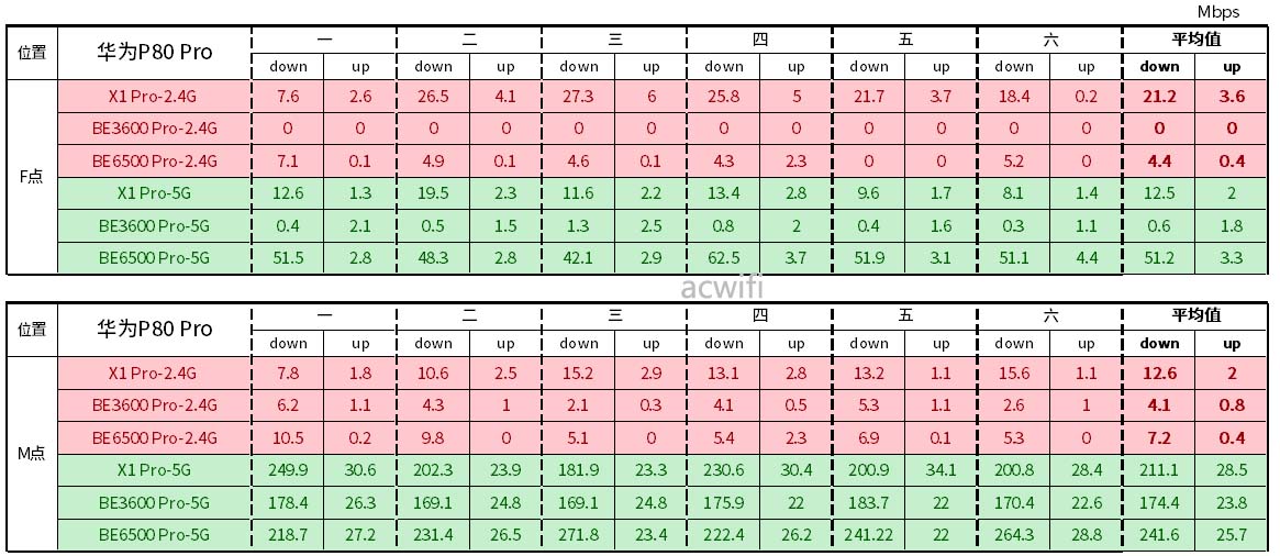 简单来说,这两款手机和三款Wi-Fi 7 无线路由器,里面的组合只有P80 Pro跟X1 Pro是2474Mbps,其它组合都是2401Mbps无线连接速率。