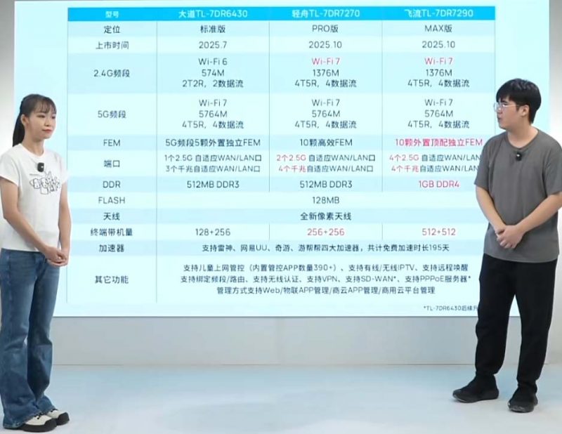 两者相差两个2.5G网口,不应该相差200元这么大吧。肯定还有其它差别。昨晚TP官方直播时就有对比的参数图: