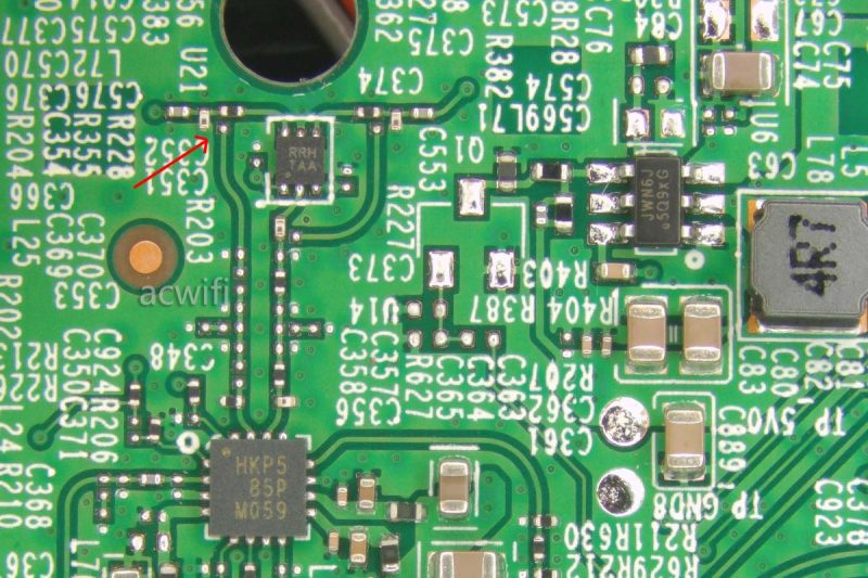 另一颗,下图(像蟑螂触须)左边那路也没有接天线。这就要翻转到主板背面来看了。