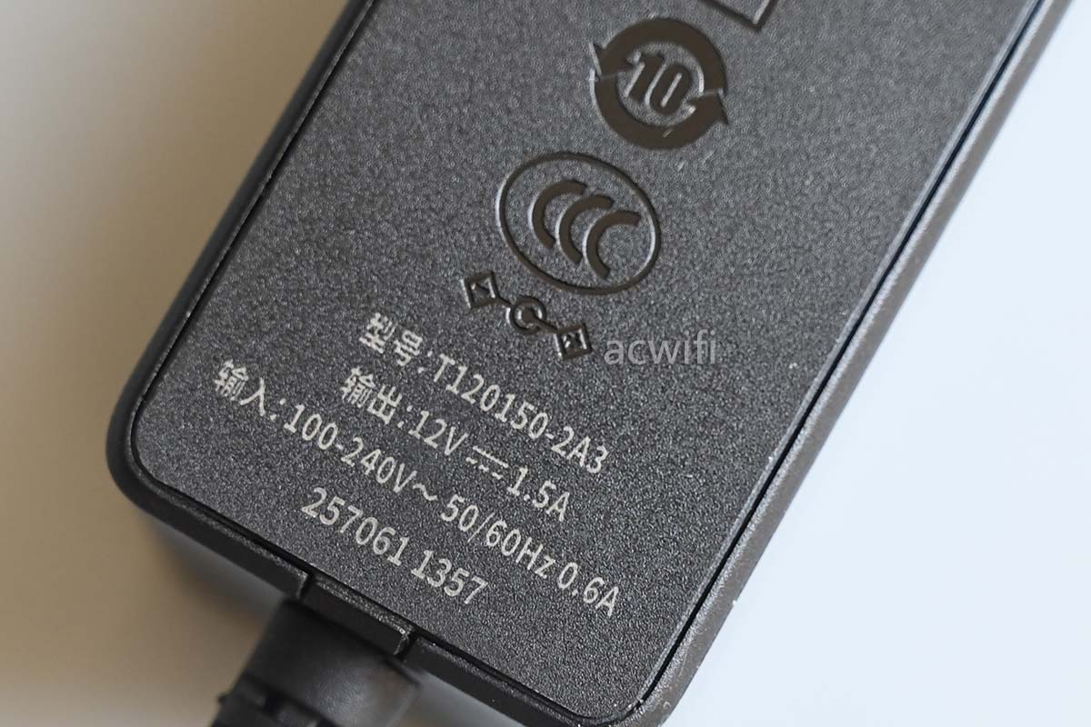 电源输出规格为12V/1.5A,实测空口待机功率为3.7W,插2.5G WAN口联网后的功率为4.2W,功耗比较低。