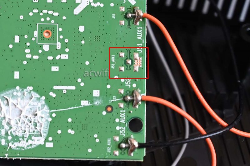 然后去看5G馈线焊接的地方,有个焊盘空的,即5G接了三根天线,黑色和邻近的橙色,通过SPDT切换择优的线路。
