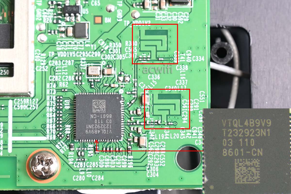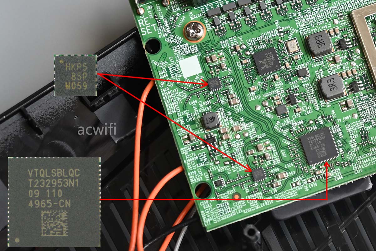 2.4G RF芯片和5G RF芯片,在丝印上,跟以往拆过的华为产品和九联那款的不一样。2.4G和5G分别是 T232923N1、T232953N1,以往拆过的三款都是T232923F1、T232953F1。不管了,我都叫Hi1155。除非有更具体的信息出现。理论上还有一个型号Hi1156,只是,跟看见的射频电路,不太对应。算了!