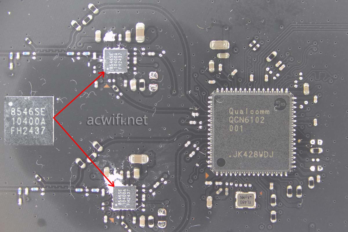 它相比小米AX3000E,多了独立的2.4G FEM芯片和多了NFC芯片。