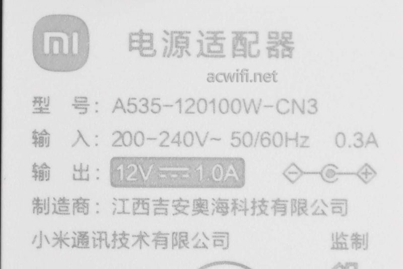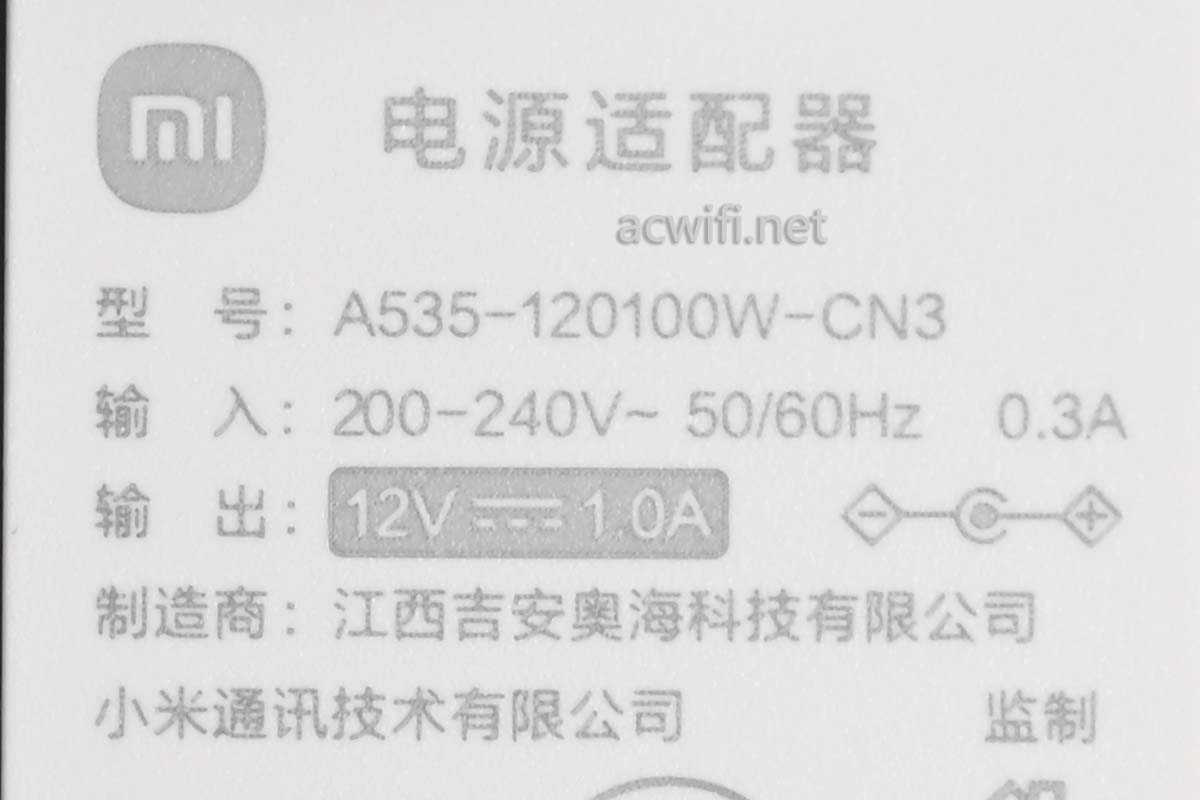 电源输出规格为12V/1A,实测空口待机功率5.8W。