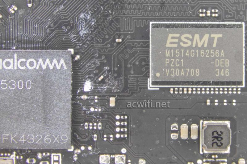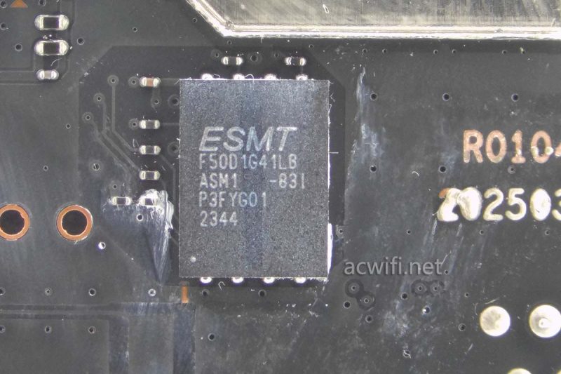 旁边的内存芯片,型号是ESMT(晶豪科技)的M15T2G16128A,DDR3L-1866,容量256MB。