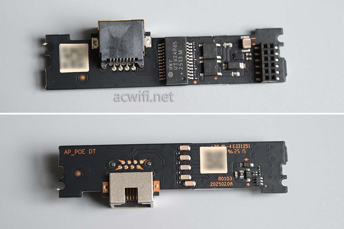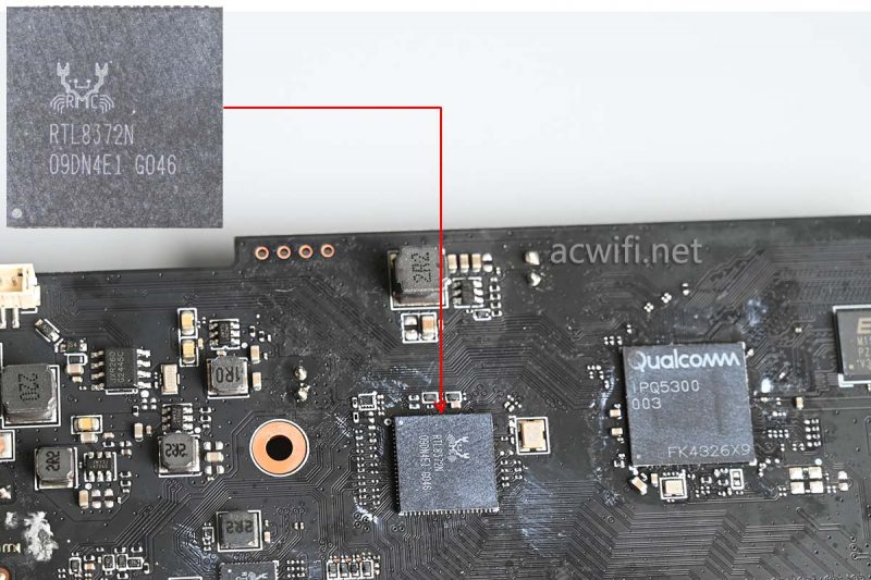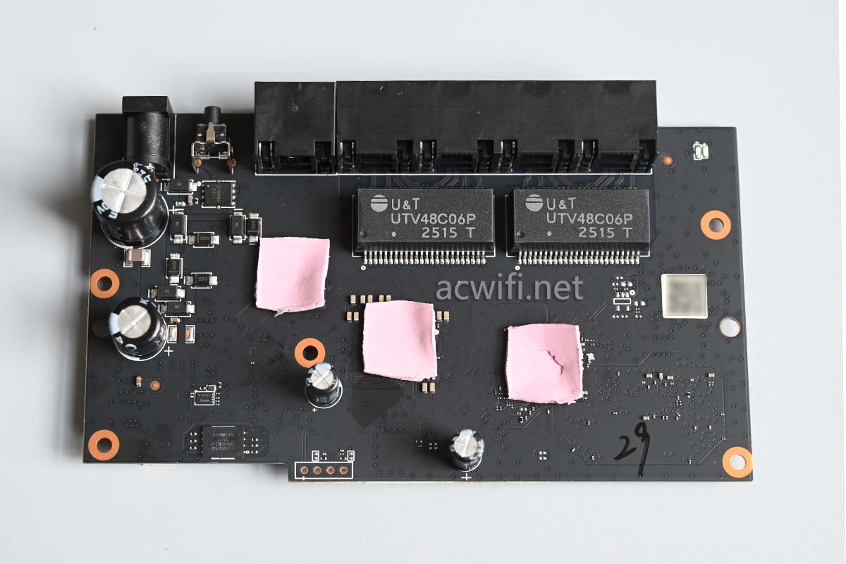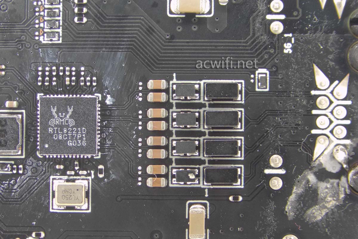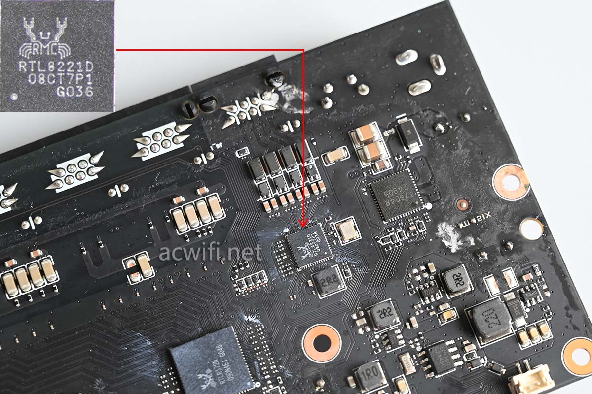 还有一个2.5G网口由这颗单2.5G PHY芯片负责:RTL8221D,这个型号我第一次见。它跟RTL8221B有着相同的封装(QFN48) ,相同的速率(10/100/1000/2500 Mbps),相同的工作电压3.3/1.8。很有可能芯片制程不一样了,RTL8221B是22nm,RTL8221D可很用能更小的制程,即RTL8221D是RTL8221B的升级版。不过两者性能是一样的!