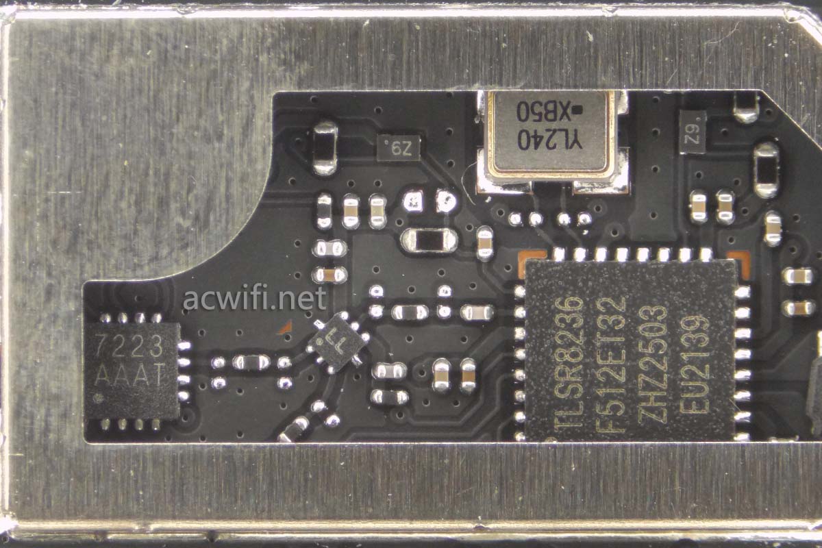 蓝牙芯片用Telink的TLSR8236;丝印“7223”的芯片型号是卓胜微的MXD7223,集成了SPTD+LNA。
