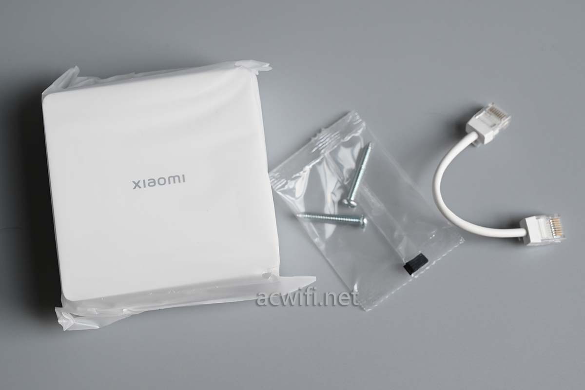 取出机身、两颗安装螺丝和一根短网线。螺丝是可以让你直接安装在86底盒上,而不必用“双面胶”粘贴安装。