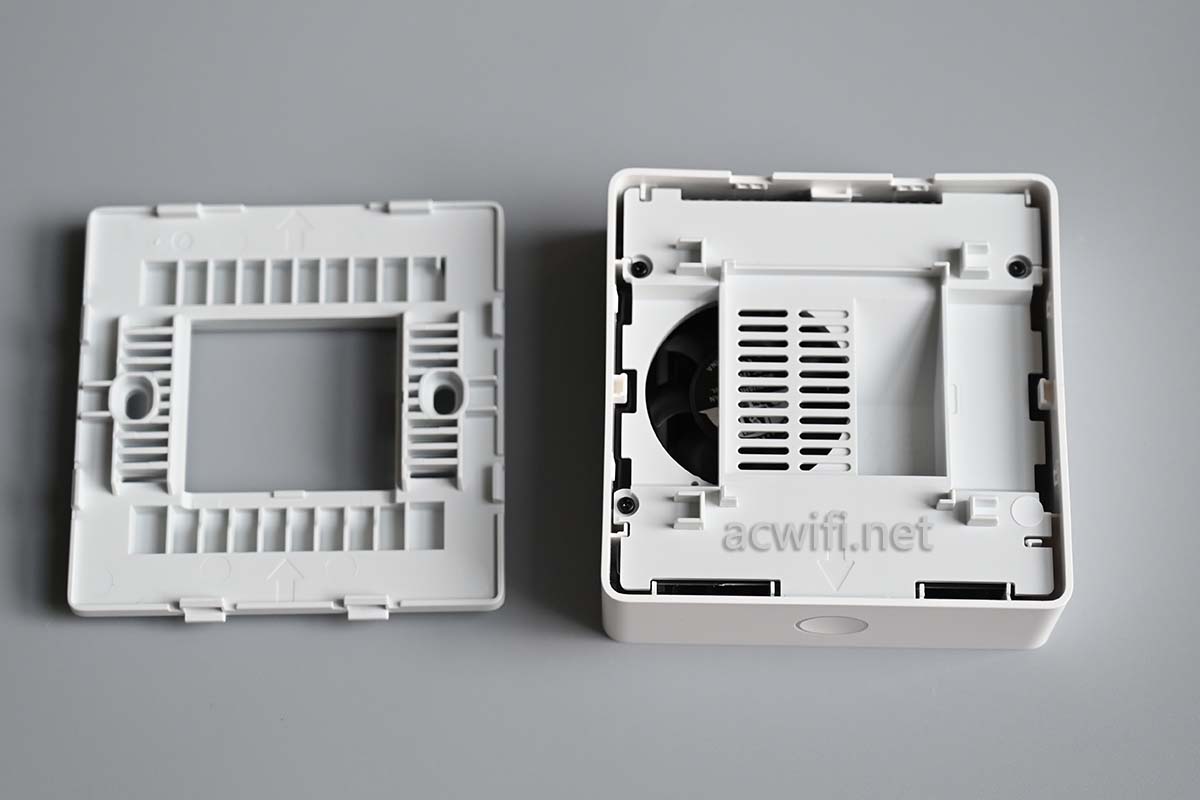 撬开底座,(如果你要用螺丝直接安装在86底盒上,就是把这个底座安装上去,然后机身压进去就行)
