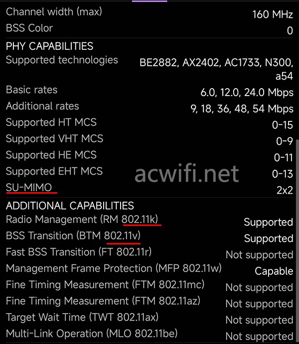 默认支持802.11k和802.11v,支持波束成形,不支持MU-MIMO。