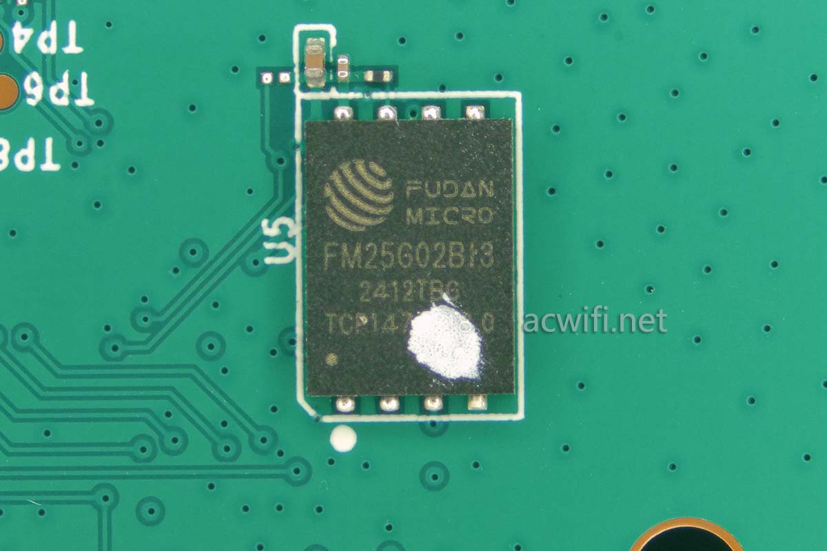 背面这里有粒闪存,型号是FM25G02BI3,容量256MB: