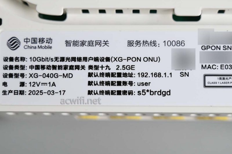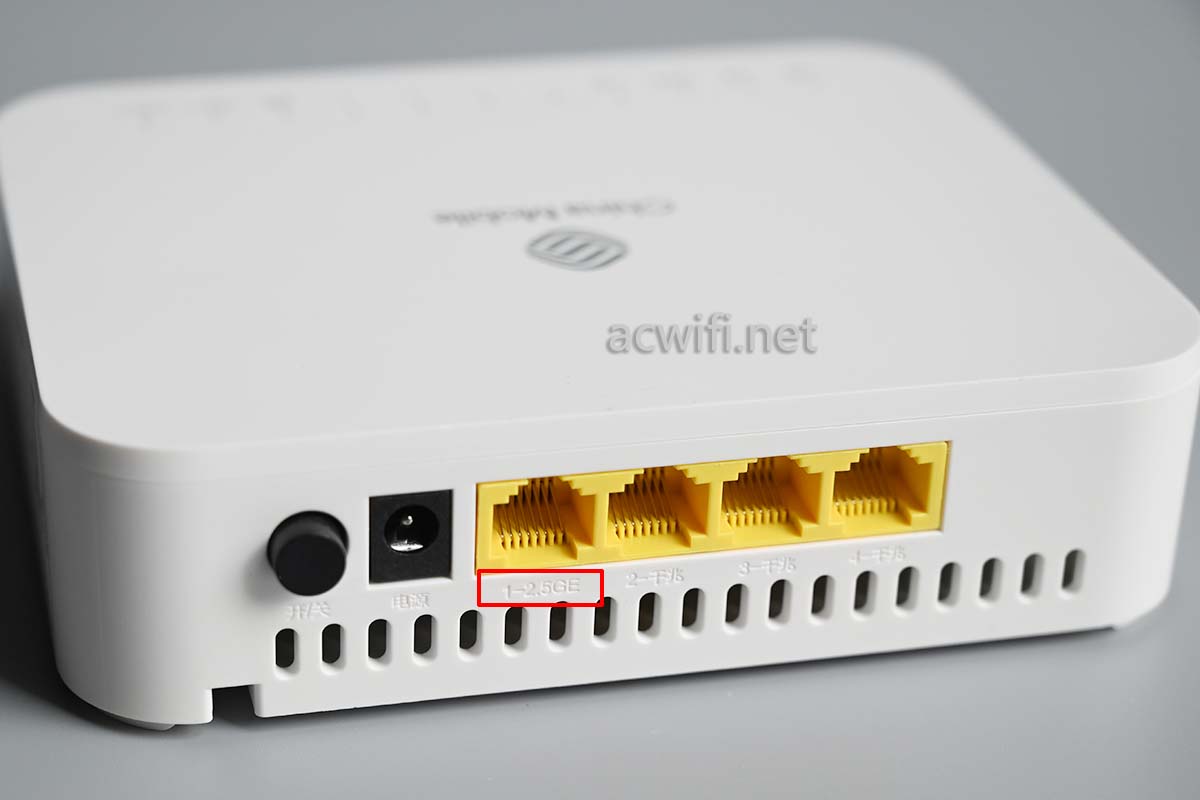 机身背面一共有四个网口,有一个2.5G;还有电源开关(方便硬重启光猫)。